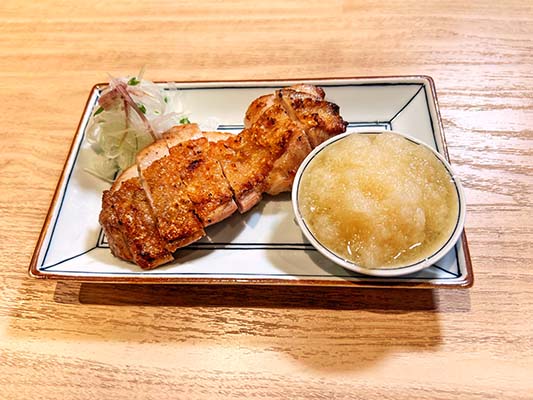創業当時からの看板メニューです。鶏は自然豊かな環境で飼育された紅ふじ鶏を使っていて、鶏臭さが少なく、しっかりとした肉質なのが特徴です。 新鮮な1枚肉(鶏もも)を炭火焼きでじっくりと焼き、特製の大根おろしだれでいただきます。皮はパリパリで中がぶりんぶりんとした歯ごたえです。また、串に刺した特上もも肉の焼き鳥も、1人で何本も召し上がる方もいらっしゃる位、皆様がお好きなメニューです。