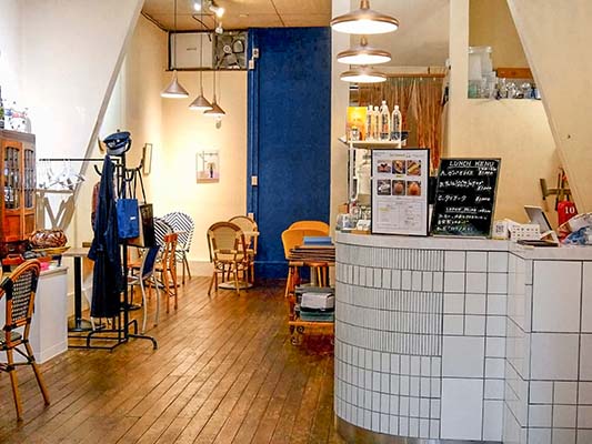独立する時には、まずは子どもやペットを連れて入れるお店にしたい! と考え、それには広い方がのびのび出来ていいなと。息子が赤ちゃんだった頃に外出して感じた経験がきっかけです。 ベビーチェアやおむつ交換台、男女両方のトイレにベビーキープを完備しています。アートやジュエリー(デザイナーの奥様が制作)も飾っていますので、見ていて楽しいと思いますよ。