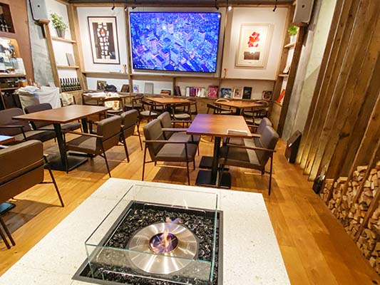 18時からは「暖炉」に火が灯る
